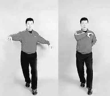 走路时,两手半握,虎口张开成弧形。左脚向前迈步的同时,双手向身体两侧打开,在左脚落地的同时,右手轻轻拍打左胸(以乳头为原点,水平和垂直各划一条直线的上1/4区域),左手则向右侧后腰处拍打。然后迈右腿,左手拍打右胸,右手拍打左后腰,一边前进,一边拍。这种走路方式可以锻炼肺部,有助于呼吸通畅。行走时,要保持身体直立,眼睛向前看。