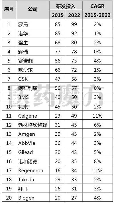 在对制药业务的研发投入方面,2022年排名TOP20的药企依然是大家都很熟悉的面孔。巨额研发投入对于保持竞争力是必须的。