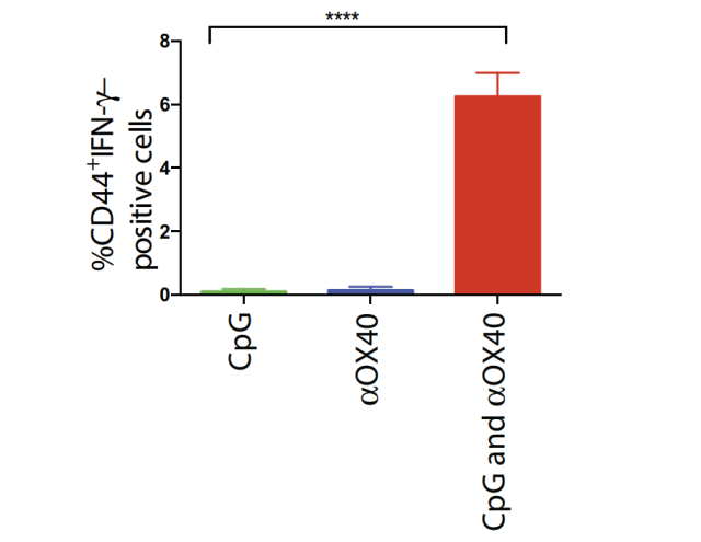 既然已经确定CpG可以有效增加效应T细胞表面0X40受体的表达,Levy教授便开始测试CpG联合OX40受体激动剂治疗肿瘤的效果。