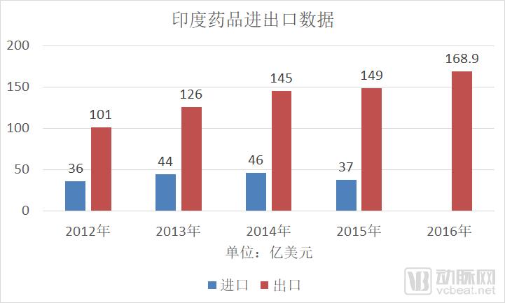 印度是一个仿制药出口大国,仿制药出口量约占全球20%。2016财年,印度出口仿制药价值168.9亿美元,增速为9.44%;预计到2020年,印度仿制药出口额将达到400亿美元。