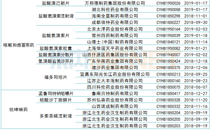 17个药品中,全身用抗组胺药、咳嗽和感冒用药各有7个药品,抗哮喘药仅有3个。据米内网数据,2017年中国公立医疗机构终端呼吸系统用药TOP3亚类分别是抗哮喘药、咳嗽和感冒用药、全身用抗组胺药。