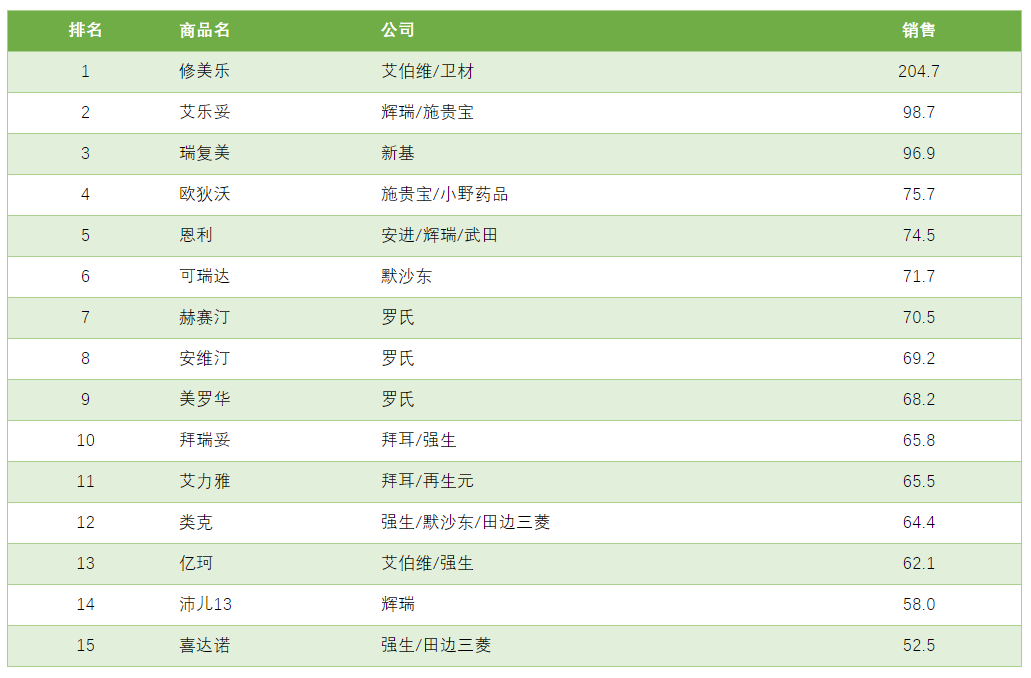 今天周末,给大家分享下目前全球最畅销的 15 种药物名单,供参考。