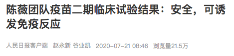 上述报道称,根据我国《疫苗管理法》,该疫苗已满足应急使用的技术要求。此外,国药集团中国生物承担研发的灭活疫苗目前已经进入临床三期试验阶段,并已具备大规模量产的能力,各项进度均处于全球领先地位。