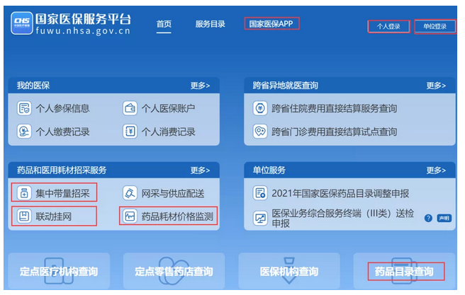 第一项:集中采购药品和医用耗材信息查询(面向群众):可查询集中采购药品/医用耗材相关信息,如药品医保编码、通用名、商品名、剂型、规格、包装数量、生产企业、批准文号、挂网价格(签署保密协议除外)等。