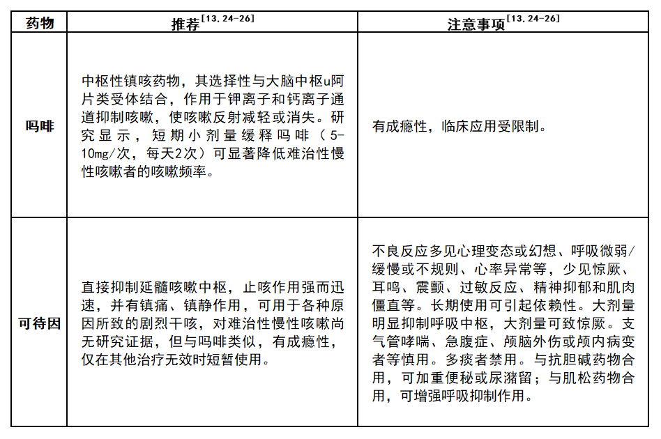 除了共识,笔者还查阅其他文献、总结了难治性慢性咳嗽的用药及其注意事项供大家参考。