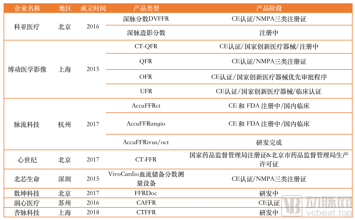 2016年以后,大量企业意识到这一路径的可行性,国内大量关于影像FFR的公司开始成立。其中系统研发生产商主要包括科亚医疗、博动医疗、脉流科技、心世纪、数坤科技、北芯生命等。