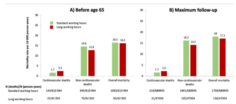 近日,The Lancet Regional Health - Europe发表的一项研究表明:每周工作时间超过55小时增加了细菌感染、糖尿病、肌肉骨骼疾病以及受伤的风险,并且与65岁前死于心血管疾病的风险增加52%有关。