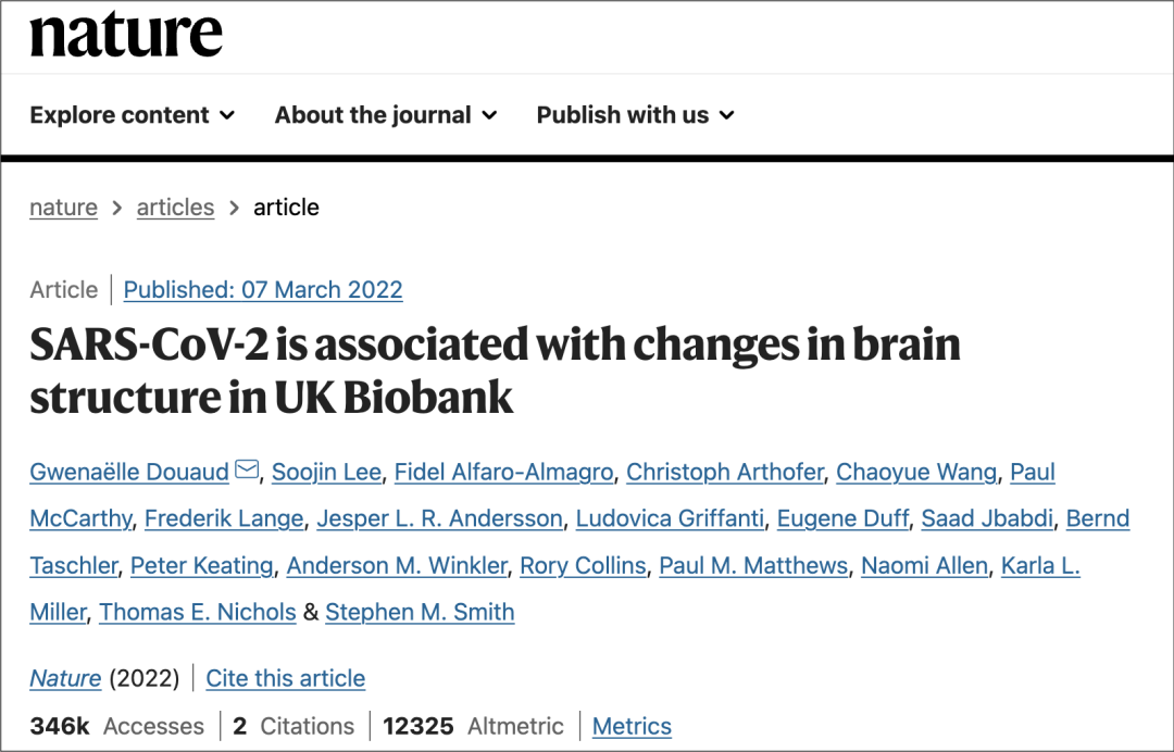 最近,《自然》杂志发表一篇关于轻中症新冠感染和大脑改变相关的研究,提出感染新冠病毒可能会减少大脑边缘系统和嗅觉皮质系统灰质的厚度,引发广泛关注。