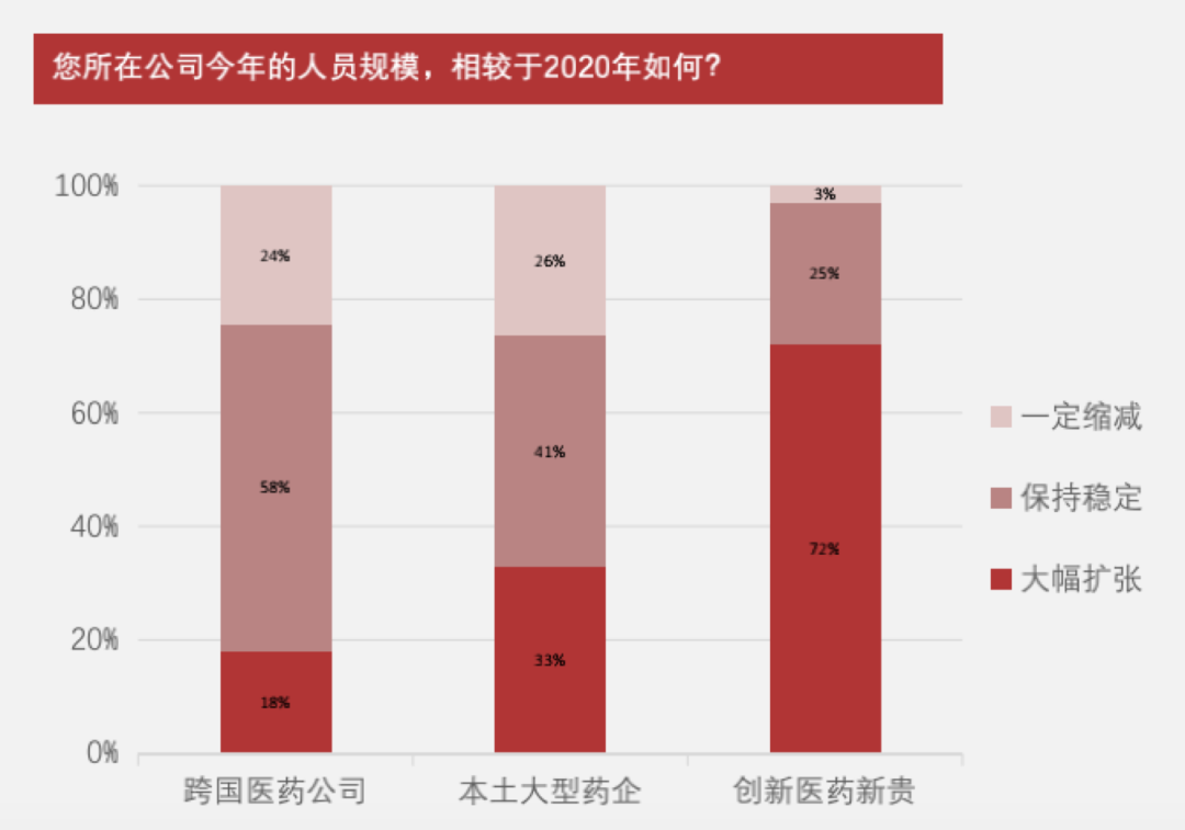 超过24%的跨国药企与超过26%的本土大型药企在2021年出现一定程度的规模缩减;