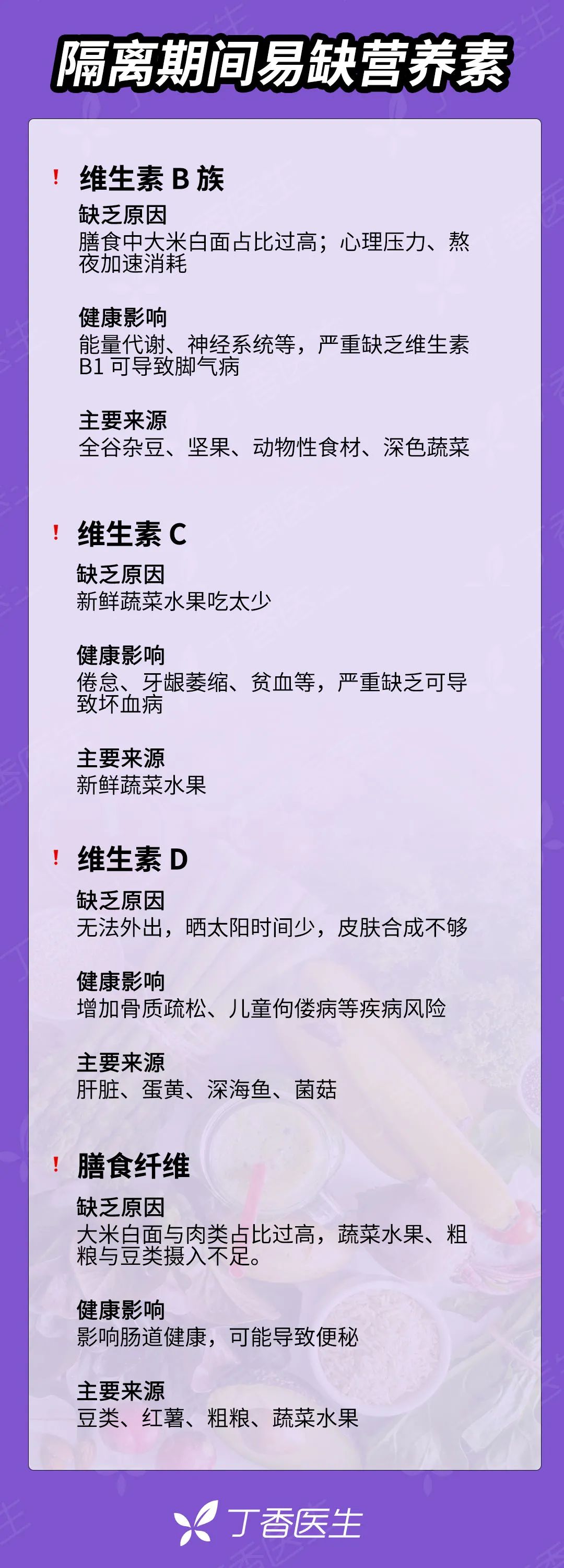疫情隔离中,这些营养素比较容易缺乏,需要重点关注:
