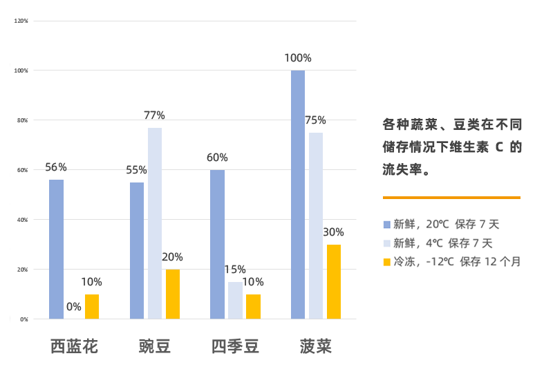 蔬菜冷冻一年,损失的维 C 少于常温储存一周