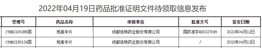 4月19日,NMPA官网发布最新获批药品信息,成都倍特药业的地高辛片首家过评。截至目前,心脏病治疗用药过评产品达22个。