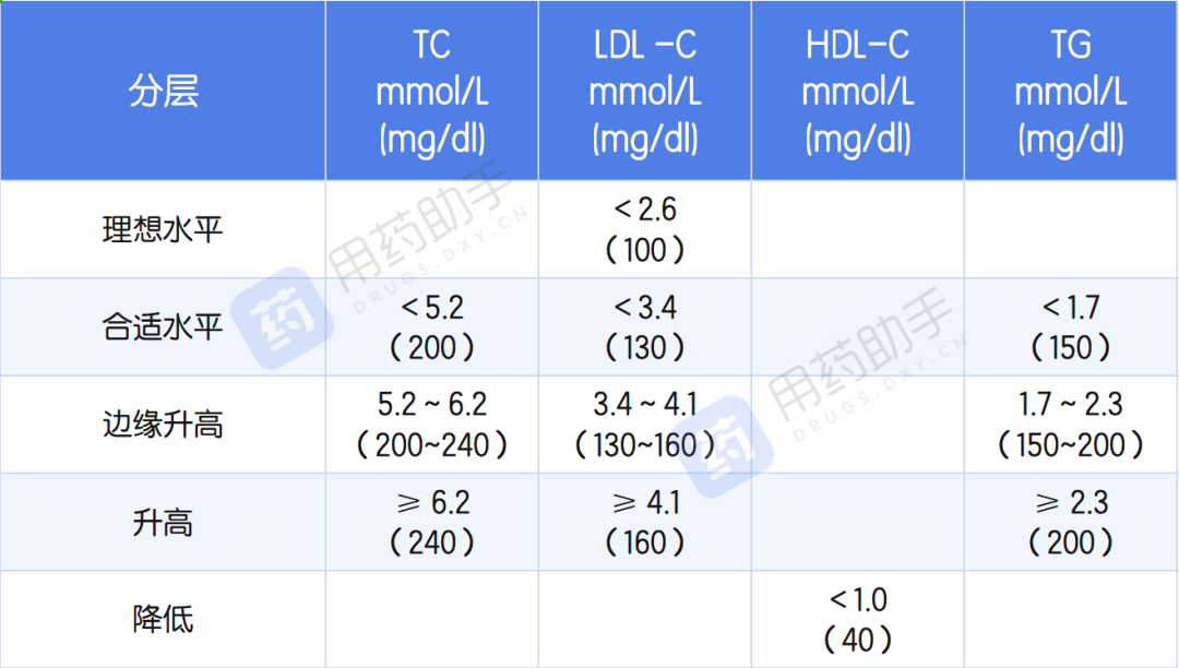 一级预防人群血脂合适水平和异常分层标准