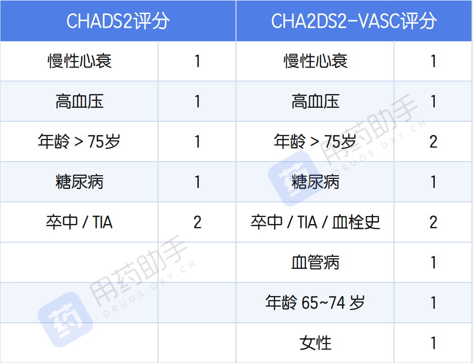 表 2. CHADS2 评分和 CHADS2-VASC 评分