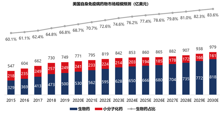 国内拥有庞大的自身免疫疾病人群,免疫疾病治疗需求快速增长,用药方案逐步从化学制剂向生物制剂/新一代靶向药升级,提升空间较大