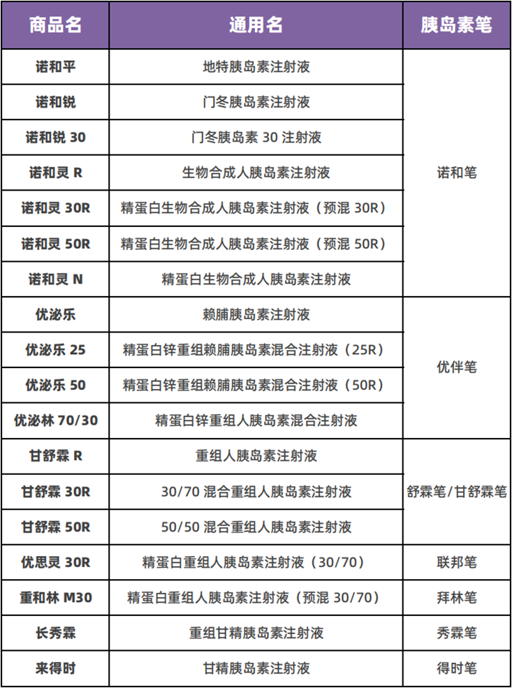 以下为大家总结临床常用胰岛素通用名、商品名及胰岛素笔。