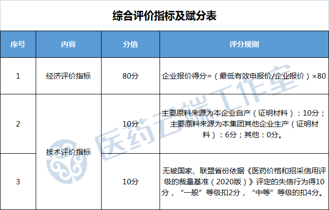 同品种药品中最多产生1家中选企业。本次集中采购采用综合评价方式对产品经济评价指标(按照单位可比价计算)和技术评价指标进行评审,总分100分,综合评价得分最高的为拟中选企业。