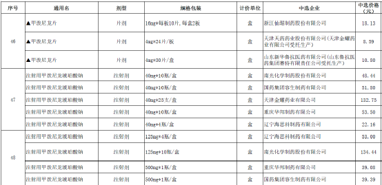 甲泼尼龙作为年销售超10亿元的大品种,于今年7月进入第七批集采名单。仙琚、天津天药、国药等7家国内生产企业入选集采名单,而原研厂商辉瑞放弃参选。甲泼尼龙集采入选企业如下图所示: