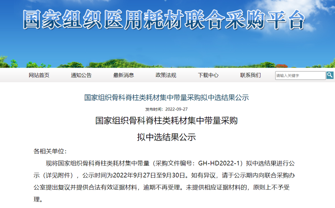 9月27日晚间,国家组织骨科脊柱类耗材集中带量采购拟中标结果公布,本次集采拟中选企业152家,拟中选产品平均降价84%。