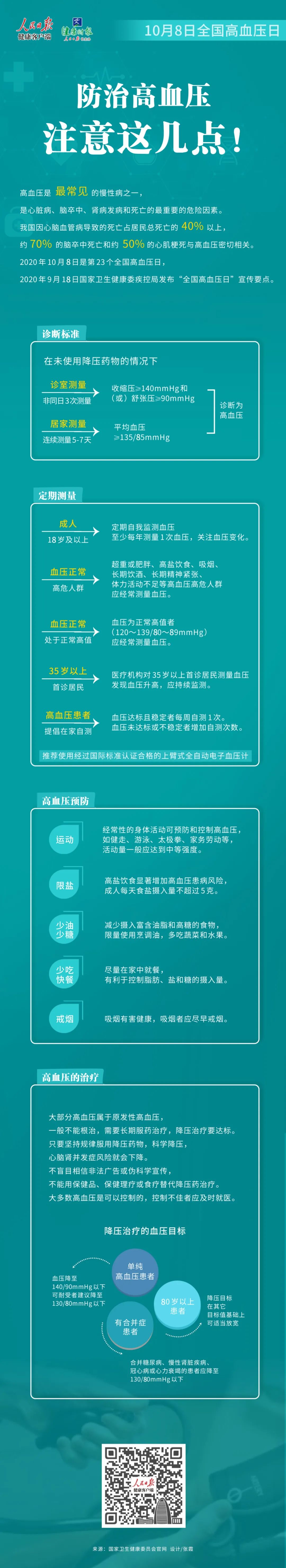 10月8日是全国高血压日,今年的主题是“血压要知晓,降压要达标”。