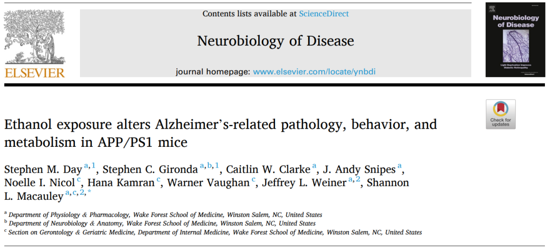 近日,美国维克森林医学院的研究人员在 Neurobiology of Disease 期刊发表了题为:Ethanol exposure alters Alzheimer's-related pathology, behavior, and metabolism in APP/PS1 mice 的研究论文。