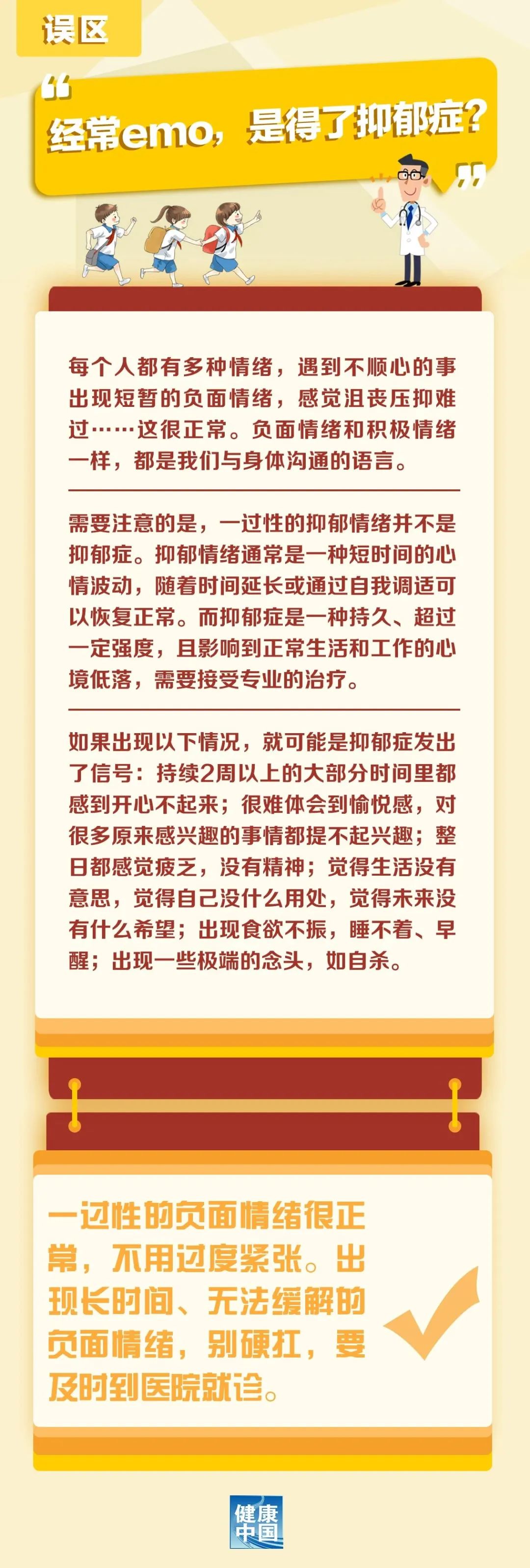 今天我们就请专家来解答“经常emo就是得了抑郁吗”这个问题。【注:emo是单词emotional的缩写,在网络上被大家用来形容各种负面情绪,如抑郁、不开心、悲伤、失落、不如意等。】