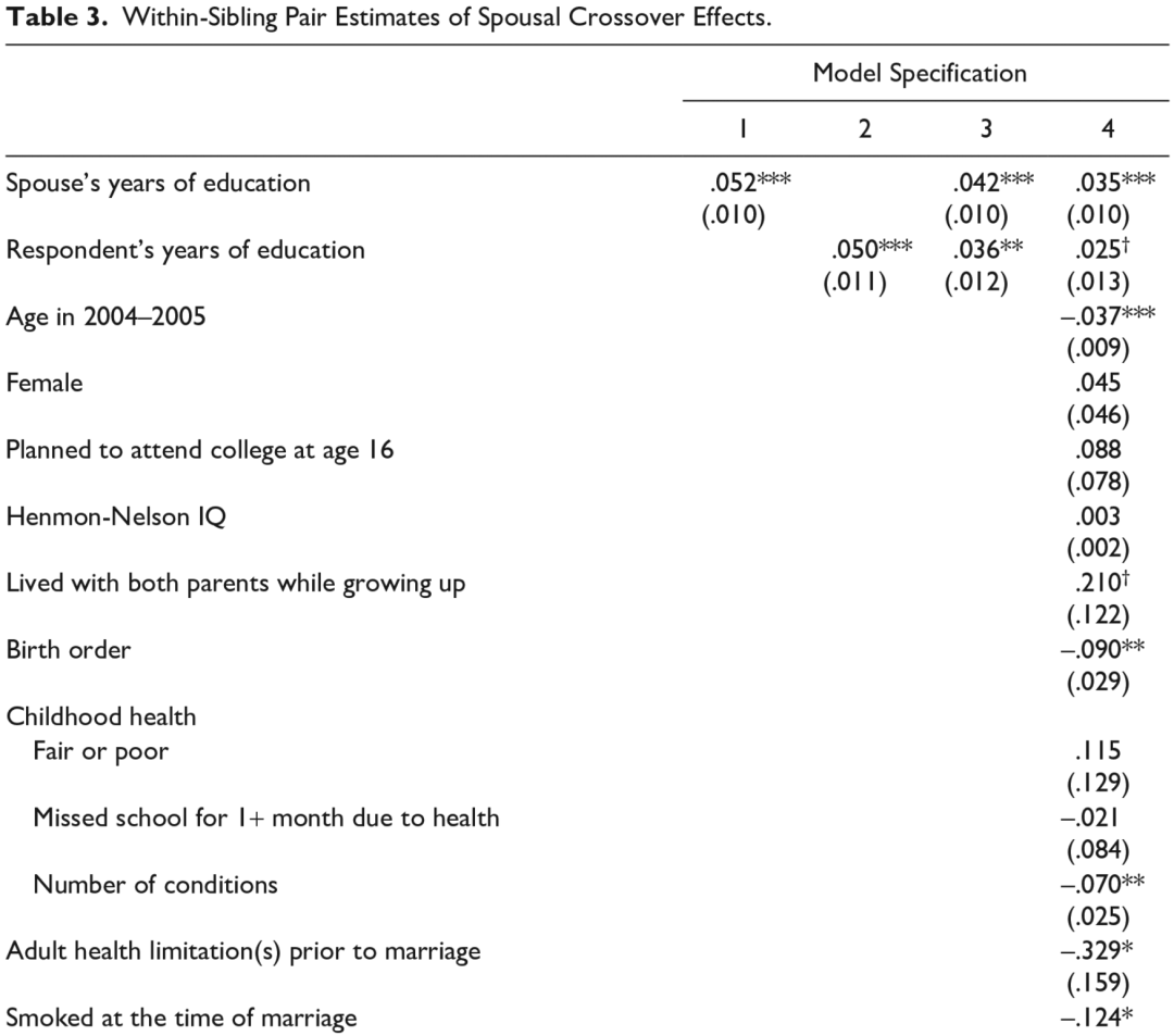 研究者采用了兄弟姐妹对内的设计,该设计利用配偶教育中的对内变化来生成配偶交叉效应的评估。