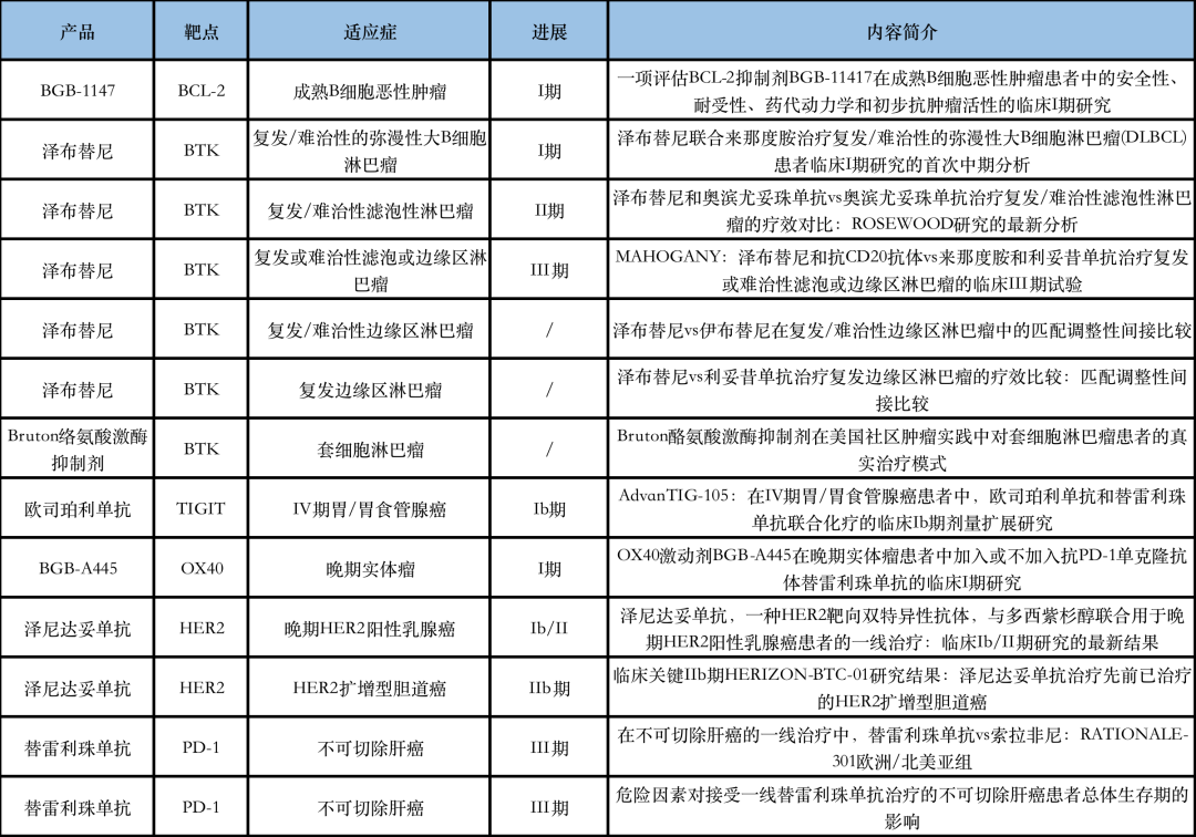 此外,百济神州还会披露多个肿瘤药最新试验数据,主要包括:ROSEWOOD研究——泽布替尼+奥妥珠单抗vs奥妥珠单抗治疗复发/难治性滤泡性淋巴瘤的疗效对比最新情况;泽布替尼联合抗CD20抗体用于r/rFL或MZLIII期数据披露;RATIONALE-301欧洲/北美亚组试验数据披露;BGB-A445用于晚期实体瘤的I期试验数据披露。