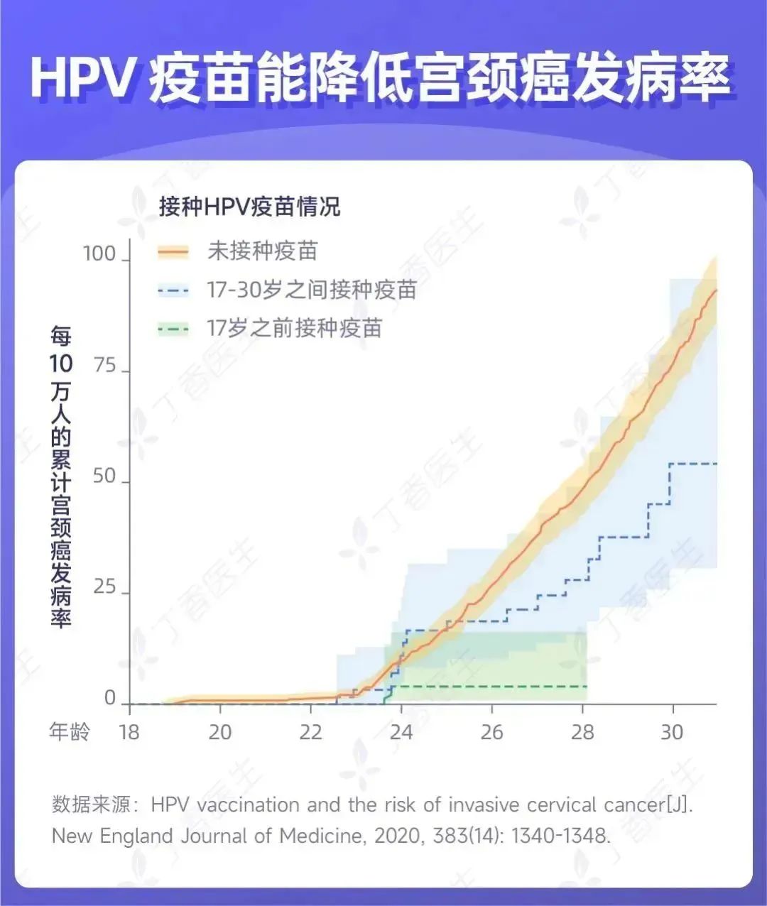 瑞典卡罗林斯卡医学院在《新英格兰医学期刊》(NEJM)上发表了题为《接种 HPV 疫苗与浸润性宫颈癌风险之间的关系》的研究论文,也为我们带来了强有力的证据。
