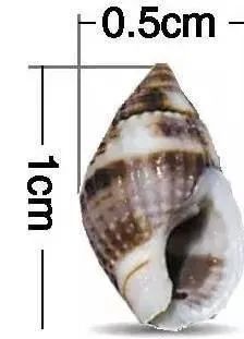织纹螺的外形似圆锥、尾部较尖而细长,长度约1厘米、宽度约0.5厘米,大小与指甲盖相仿。织纹螺壳面常具有1-3条紫褐色或红黄色螺带,肉体为淡黄色。②