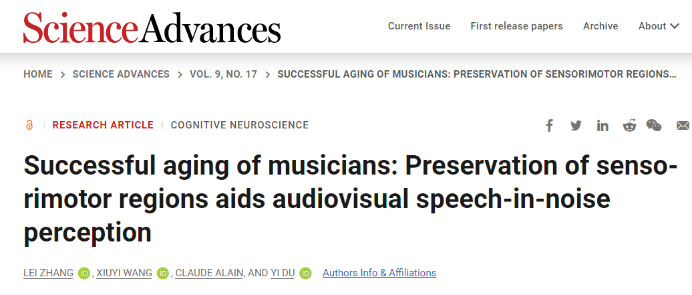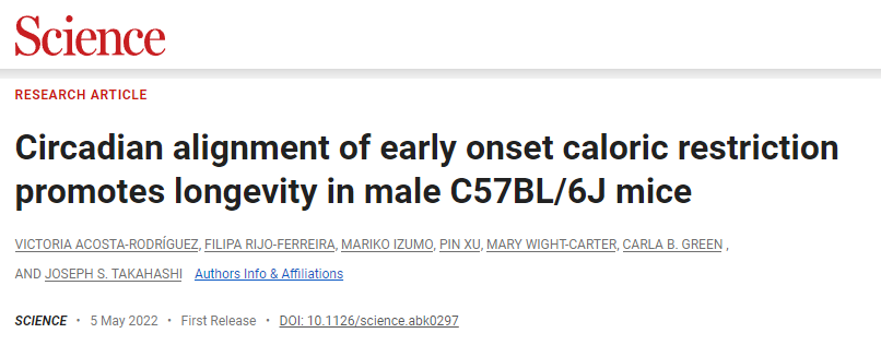 ①Successful aging of musicians: Preservation of sensorimotor regions aids audiovisual speech-in-noise perception | Science Advances https://www.science.org/doi/10.1126/sciadv.adg7056 ②Acosta-Rodríguez, V., Rijo-Ferreira, F., Izumo, M., Xu, P., Wight-Carter, M., Green, C. B., & Takahashi, J. S. (2022). Circadian alignment of early onset caloric restriction promotes longevity in male C57BL/6J mice. Science (New York, N.Y.), . Advance online publication. https://doi.org/10.1126/science.abk0297