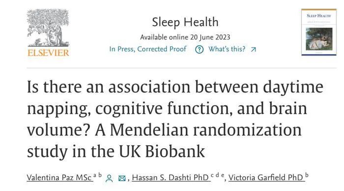 ③Valentina Paz, Hassan S. Dashti, Victoria Garfield. Is there an association between daytime napping, cognitive function, and brain volume? A Mendelian randomization study in the UK Biobank. Sleep Health, 2023; DOI: 10.1016/j.sleh.2023.05.002