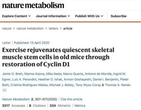 ⑥Exercise rejuvenates quiescent skeletal muscle stem cells in old mice through restoration of Cyclin D1, Nature Metabolism (2020).http://med.stanford.edu/