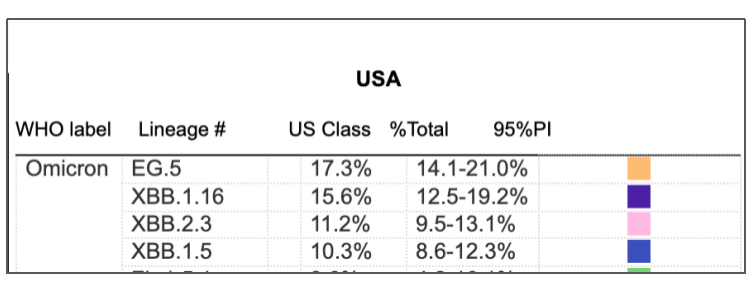 据美国疾病控制和预防中心的数据显示,在截至8月5日的两周里全美报告的所有新冠病例感染的毒株中,EG.5占17.3%,是该国最流行的毒株。