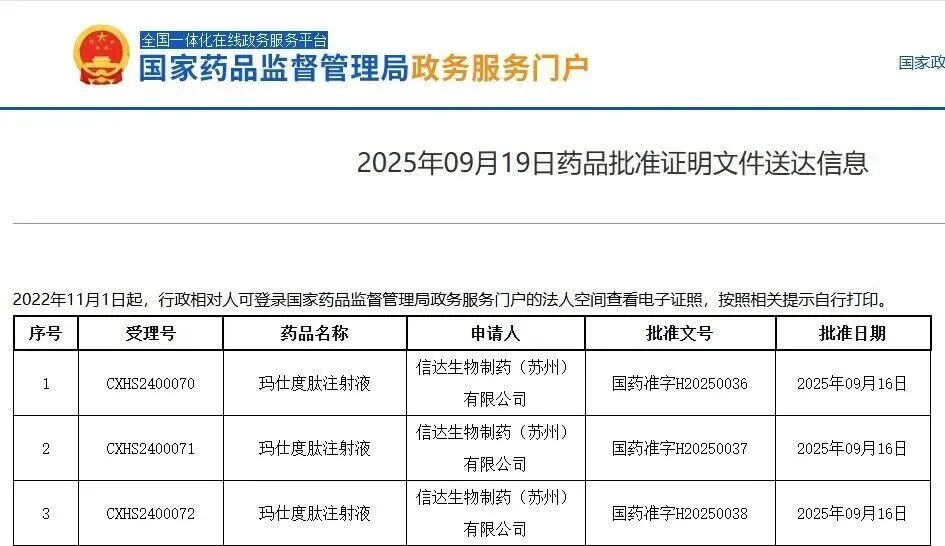 图1. 玛仕度肽新适应症获批,来源:NMPA官网