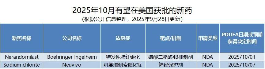 ▲10月美国FDA可能批准的新药