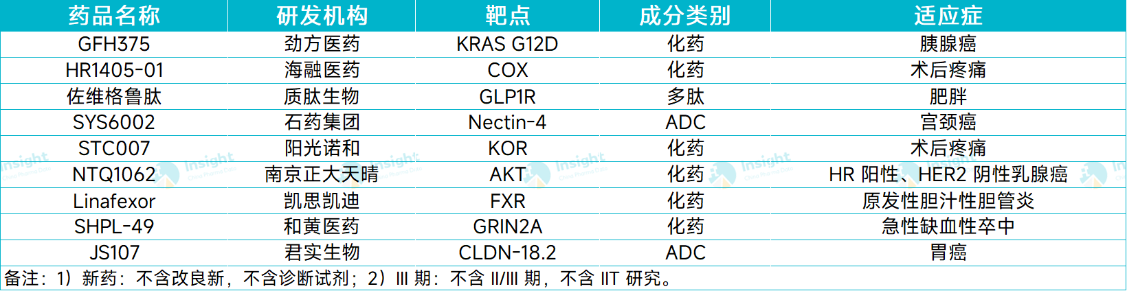 据 Insight 数据库统计,11 月份(11.1-11.27),有 9 款国产新药首次进入 III 期临床阶段,开始向上市申请发起冲刺。