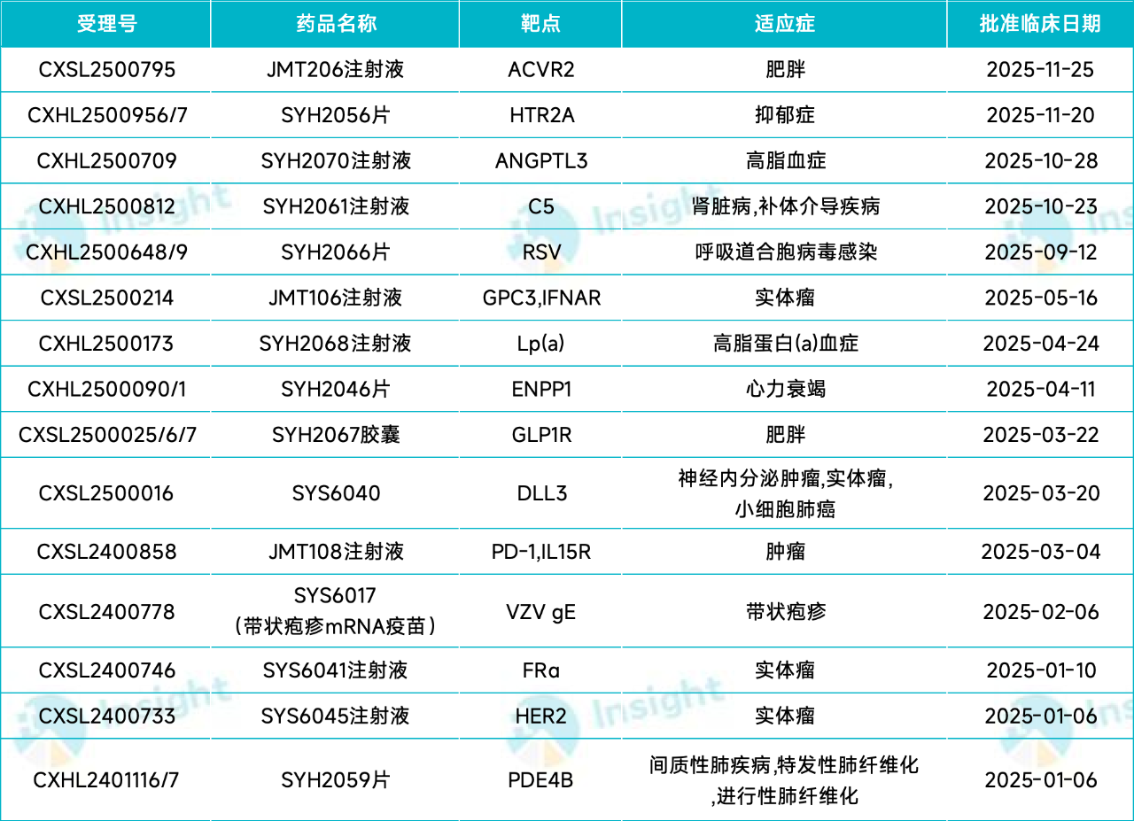 SYH2061、SYH2070 和 SYH2068 均为通过偶联乙酰半乳糖胺(GalNAc)实现肝脏靶向递送的 siRNA 药物。今年 10 月,SYH2061、SYH2070 首次在国内获批临床,这 2 款产品也已获 FDA 批准开展临床试验。SYH2068 于今年 4 月首次在国内获批临床。