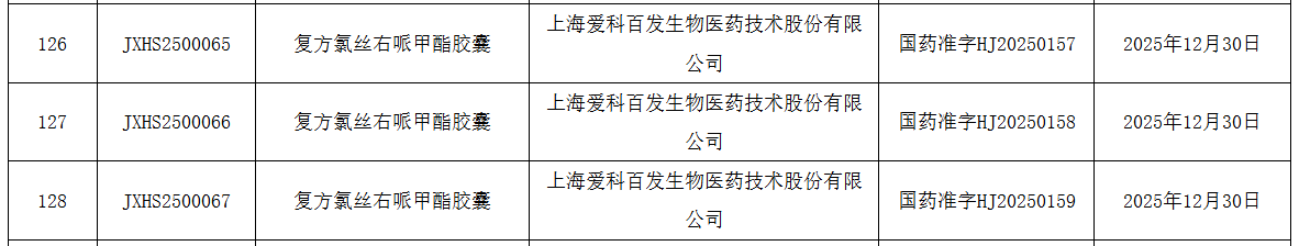 1 月 5 日,NMPA 官网显示,爱科百发申报的丝右哌甲酯右哌甲酯复方胶囊(研发代号:AK0901,商品名:爱智达)获批上市。2025 年 4 月,该药已被 CDE 纳入优先审评,用于治疗 6 岁及 6 岁以上注意缺陷多动障碍(ADHD)。