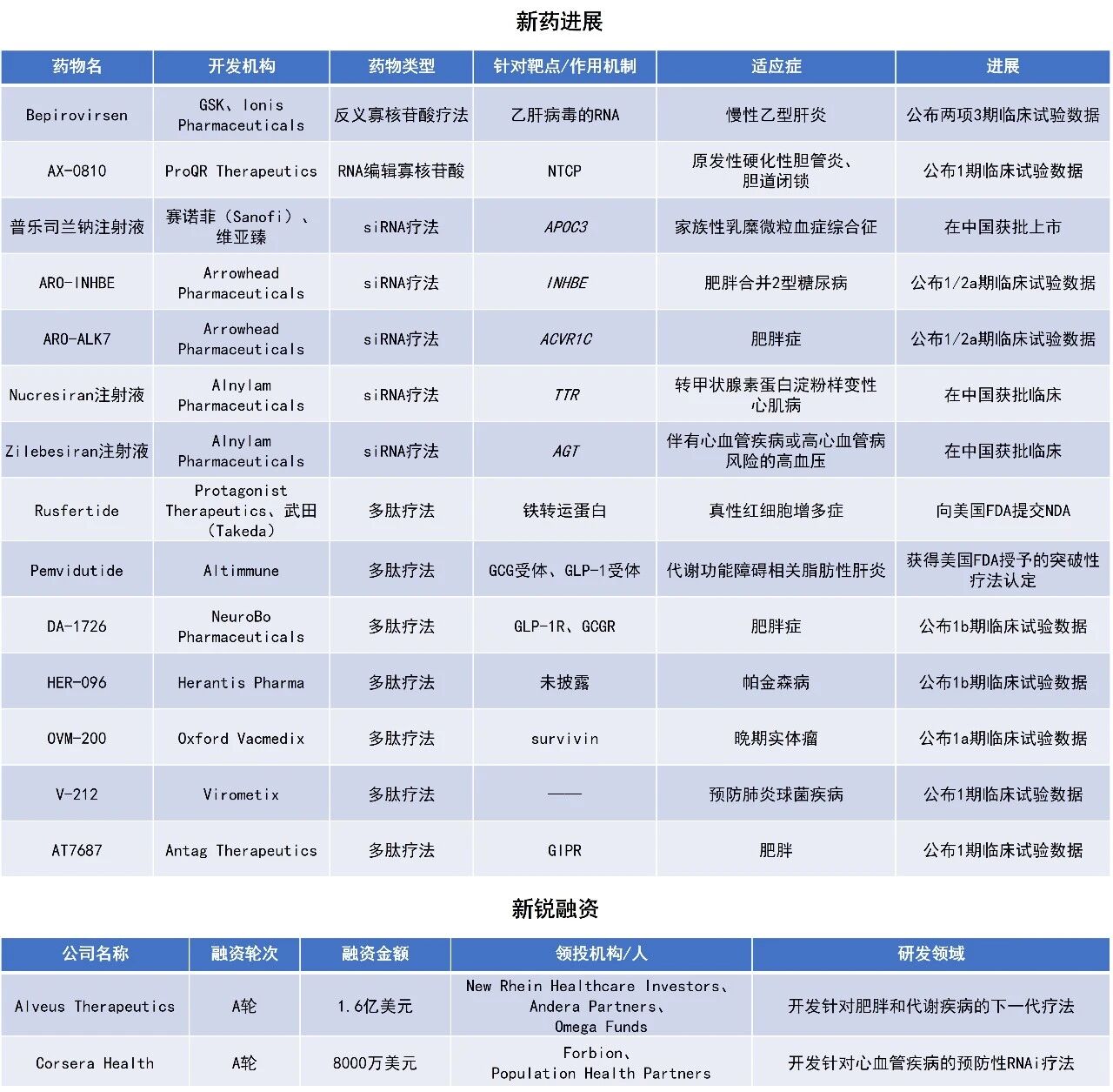 近期,全球多肽和寡核苷酸(TIDES)领域迎来系列进展。GSK宣布,其与Ionis Pharmaceuticals合作开发的在研反义寡核苷酸(ASO)疗法bepirovirsen,用于治疗慢性乙型肝炎(HBV)感染的两项关键性3期临床试验均达到主要终点。赛诺菲(Sanofi)宣布创新降脂小干扰RNA(siRNA)疗法普乐司兰钠注射液正式获得中国国家药品监督管理局(NMPA)批准。本文将节选其中部分重要进展做简单介绍,仅供读者参阅。