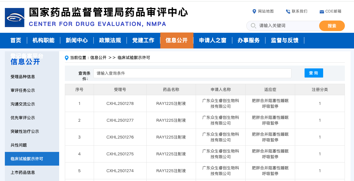 1 月 23 日,CDE 官网显示,众生药业 RAY1225 注射液获批临床,用于治疗肥胖合并阻塞性睡眠呼吸暂停(OSA)。这是该产品第 4 项获批临床的适应症,其他分别为肥胖、2 型糖尿病和代谢功能障碍相关脂肪性肝炎。