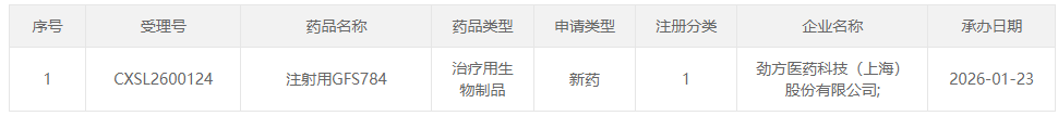 1月23日,据CDE官网公示,劲方医药申报的“注射用GFS784”临床试验申请获受理。据公开信息显示,这是一款EGFR-Pan RAS ADC药物,这也是全球首款进行IND申请的RAS ADC药物。