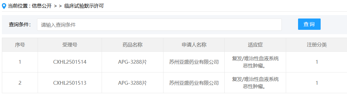 2 月 2 日,CDE 官网显示,亚盛医药的 1 类新药 APG-3288 片在国内首次获得临床试验默示许可,拟开发用于治疗复发/难治性血液系统恶性肿瘤。APG-3288 是亚盛医药基于蛋白降解靶向嵌合体(PROTAC)技术平台自主研发的首个新型高效和高选择性 BTK 降解剂。