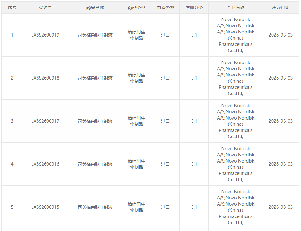 3 月 3 日,CDE 官网显示,诺和诺德「司美格鲁肽注射液」新适应症在国内申报上市,并拟纳入优先审评,适应症为:用于治疗代谢相关脂肪性肝炎(MASH)伴中重度肝纤维化(符合 F2-F3 期纤维化)的非肝硬化成人患者。