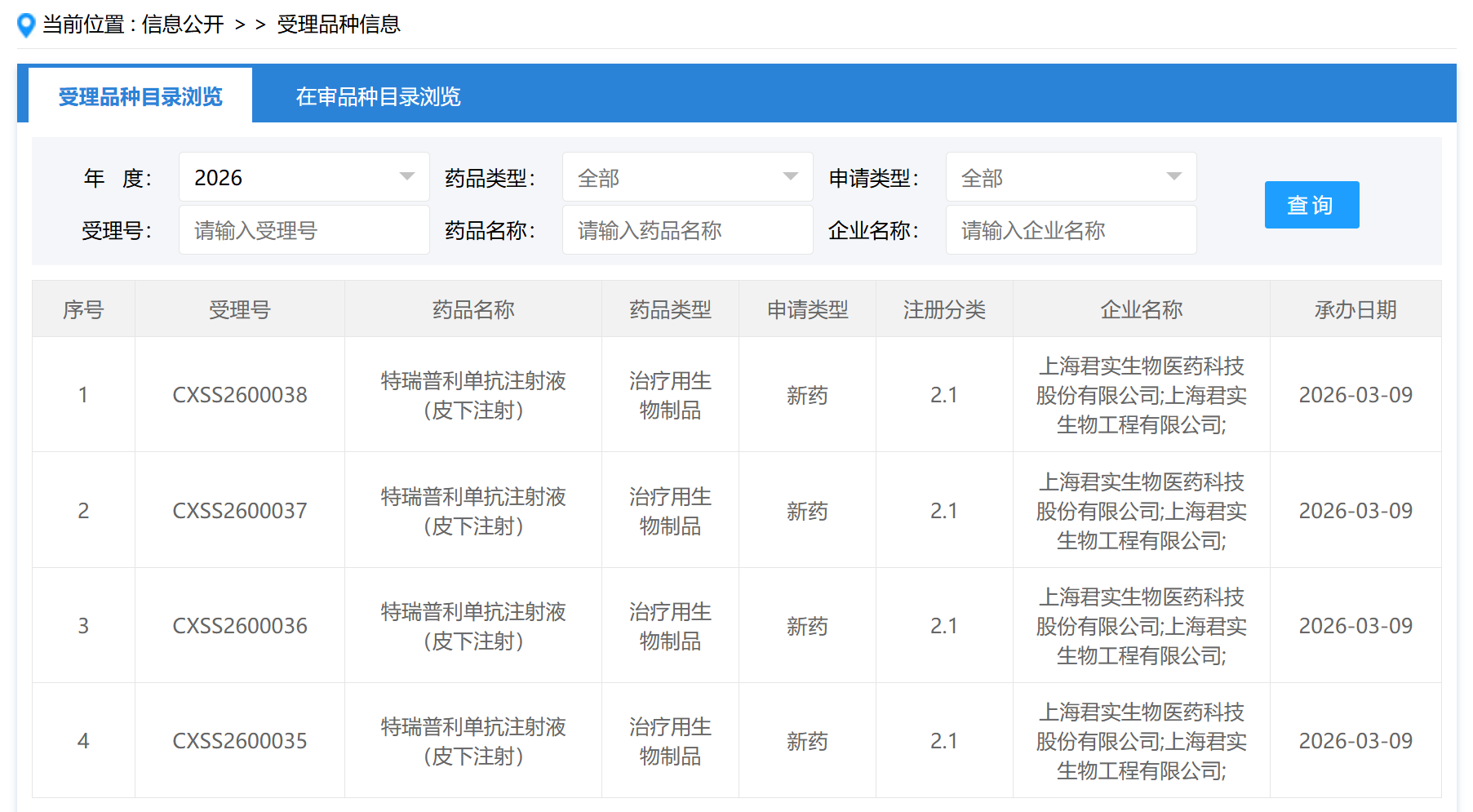 图1. 特瑞普利单抗注射液(皮下注射)的上市申请已获受理,来源:CDE官网