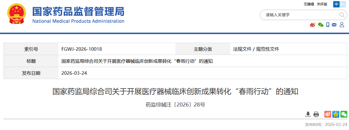 为深入贯彻落实党中央、国务院决策部署,推进以临床价值为导向的医疗器械源头创新,聚焦医工深度融合,促进更多临床创新成果向医疗器械产品转化,国家药监局决定在全国范围内组织实施为期三年的“春雨行动”。现将有关事项通知如下: