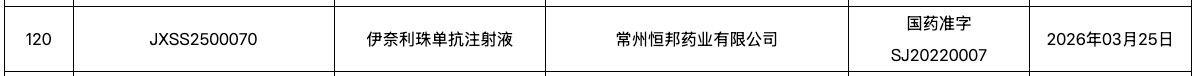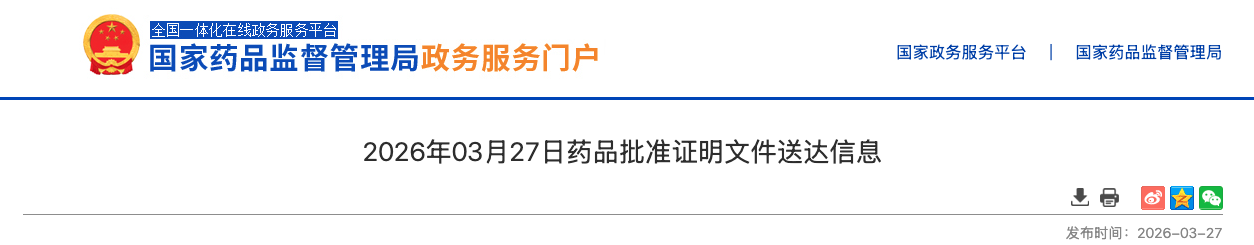 3 月 27 日,NMPA 官网显示,伊奈利珠单抗注射液新适应症获批上市,用于治疗全身型重症肌无力(gMG)成人患者。