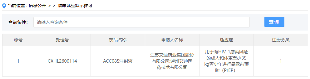 目前,全球仅有吉利德来那帕韦获批长效 PrEP 适应症,国内尚无自主研发的同类产品上市。ACC085 作为国产长效 PrEP 候选药物,有望为有感染风险的成人及体重≥35 kg 的青少年,提供更便捷、高效的预防新方案,填补国产长效 HIV 预防领域的空白。