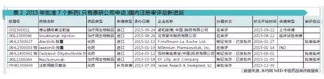 2015年FDA共批准了45个新药,包括33个新分子实体(NME)和12个生物制品许可申请(BLA)。据米内网MED中国