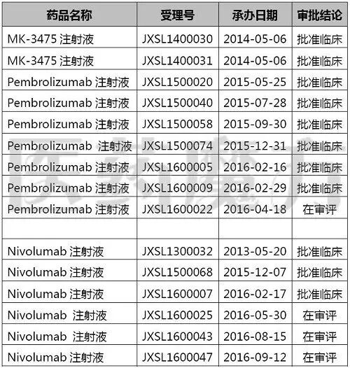 默沙东和BMS的PD-1单抗国内申报情况